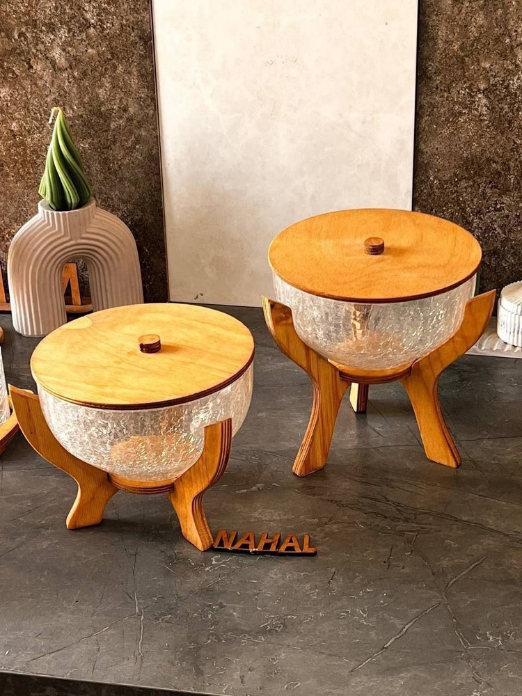 دسته ها: ست پذیرایی کارن, ست های پذیرایی, شکلاتخوری و قندان چوبی و شیشهای چوبی