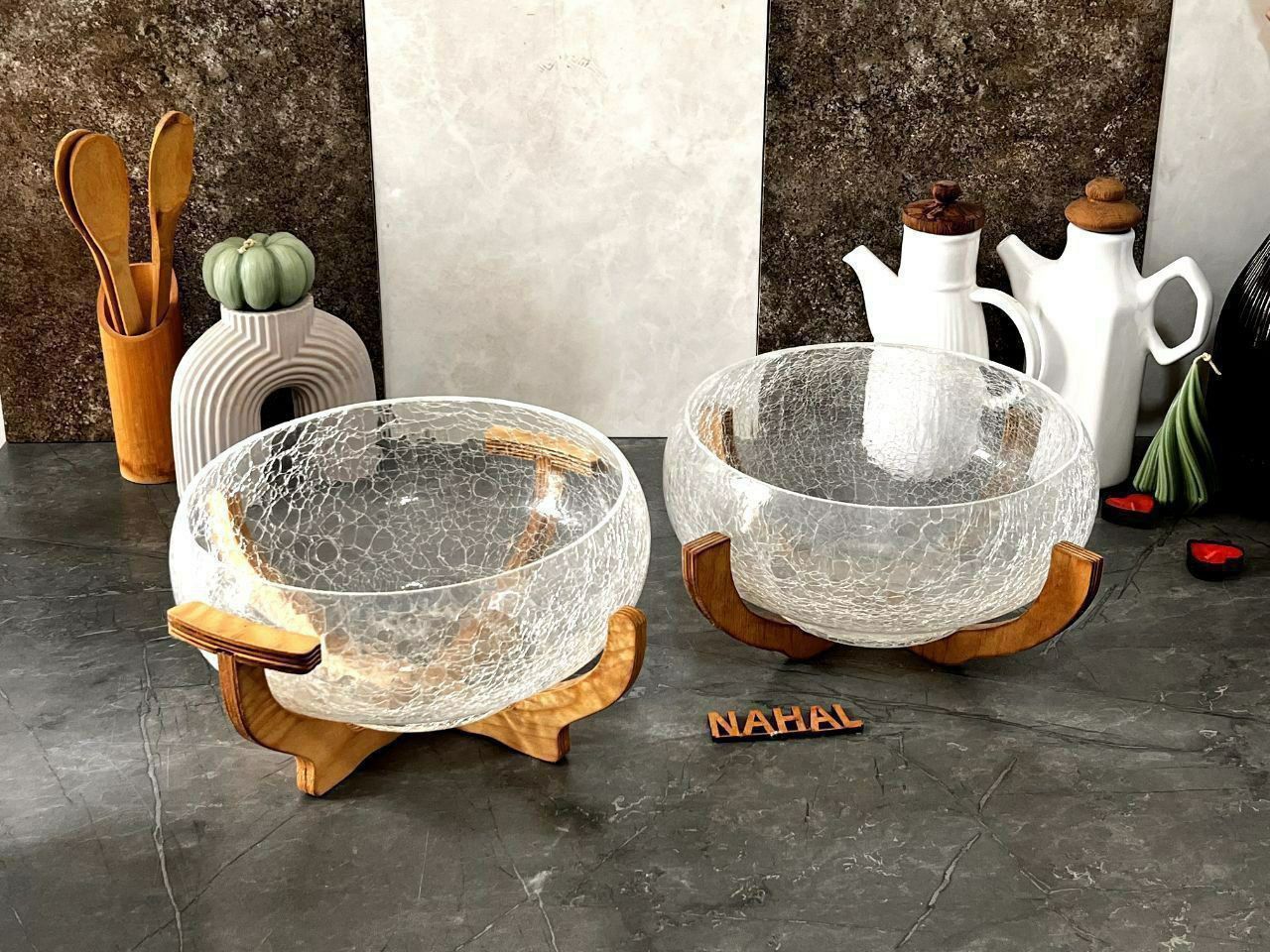 میوه خوری ساده کویین با طراحی مینیمال و خوشساخت، ساخته شده از شیشه آبگز عیار بالا و چوب پلایوود روسی. انتخابی شیک برای پذیرایی و دیزاین میز میهمانی